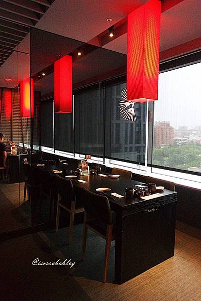 以黑與紅的色調作為裝潢的主色,結合日式風格和現代感的設計