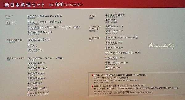 菜單只有一種選擇,新日本料理套餐($698+10%服務費),湯物、先付、刺身/烤物、強肴、釜飯、甘果物、飲料