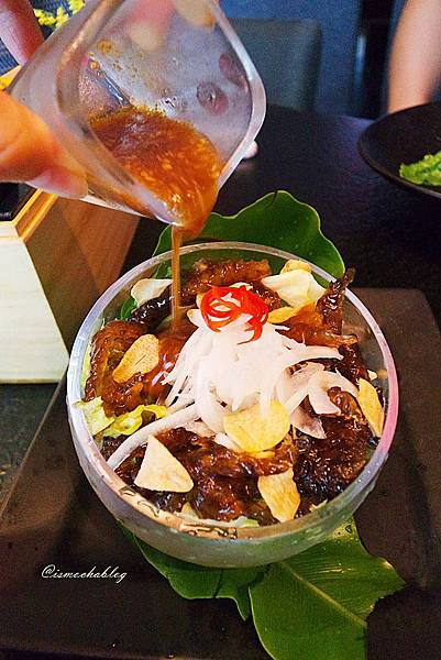 超Q彈的魚皮、綜合蔬菜,搭配醋味的sauce,清爽又有豐富層次感