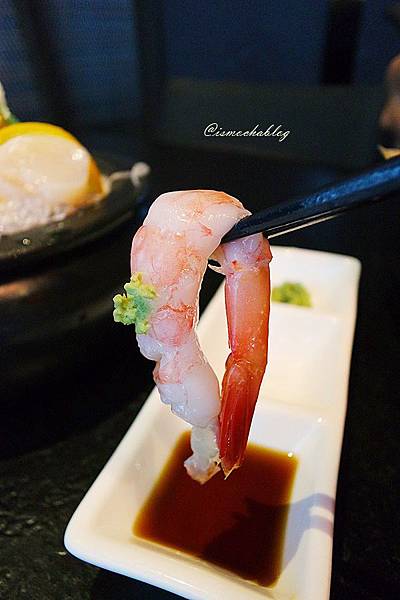 四種生鮮魚片讓愛吃生魚片的達令可樂得很,摩卡嘗試了干貝和生蝦,很是清甜
