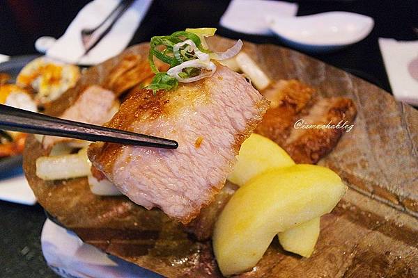 西班牙的伊比利松阪豚只有在台北四個分店才吃得到,佐上蜜蘋果實在太合拍,有解膩效果