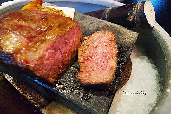 美國黑安格斯無骨牛,跟達令的拳頭一般大,喜歡吃三分熟、五分熟度的人,建議上桌後就可以開始動刀叉了