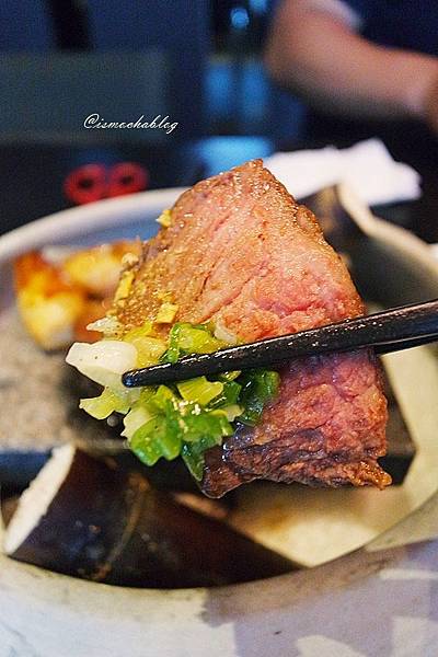 摩卡怕生肉,所以幾乎等到八分熟度才吃,雖然沒有五分熟的嫩度,不過搭配蒜酥和油蔥花好好吃,瞬間成了台菜料理